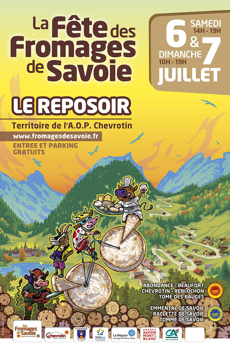 En 2019, la Fête des Fromages de Savoie se rendra pour sa 15ème édition sur le territoire de l'A.O.P. Chevrotin, les 6 et 7 juillet, sur la route des Grandes Alpes, au Reposoir (74) !