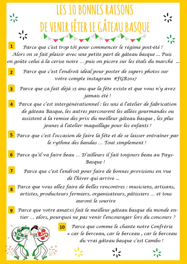 LE PROGRAMME DE LA FÊTE DU GÂTEAU BASQUE