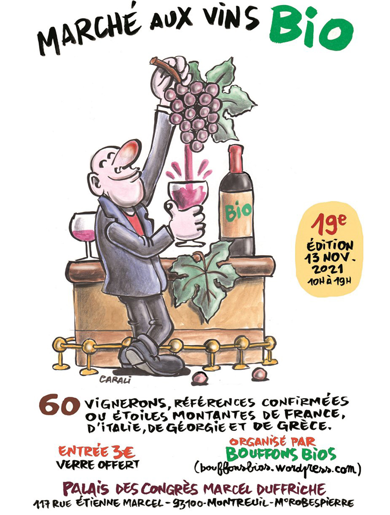 Il se fait attendre depuis mars, mais après plusieurs reports liés à l'on ne sait quelle fantaisie d'une nature toujours plus maltraitée malgré les grands discours et les fausses promesses, le 19ème Marché aux vins bios de Montreuil se tiendra le samedi 13 novembre 2021, de 10h à 19h au Palais des Congrès Paris-Est – Marcel Duffriche (Ligne 9, métro Robespierre).
