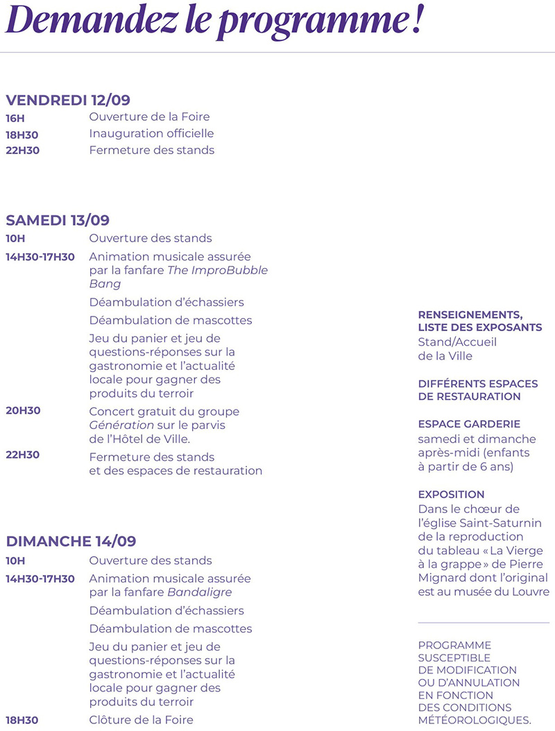 Quant aux plus jeunes, ils pourront prendre la pose à côté des deux mascottes à l’effigie du canard tyrolien et du corbeau. En avant-goût des Journées du patrimoine, les curieux pourront découvrir la reproduction du tableau « La Vierge à la grappe » de Pierre Mignard exposée pour la première fois dans le chœur de l’église Saint-Saturnin et dont l’original est au musée du Louvre.