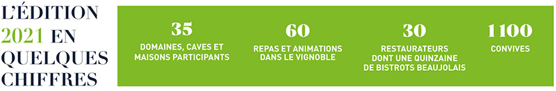 À la clé pour le grand public ? Un apéritif dans le jardin sous une tonnelle, un repas gastronomique au cœur d’une cave, un pique-nique dans les vignes… les convives et leurs hôtes se retrouvent, le temps d’un déjeuner ou d’un dîner, à de grandes tablées pour partager ensemble leur passion des bons vins et de la bonne chère. Une manière de s’initier à la dégustation et de vivre un instant unique mêlant rencontres et belles histoires, autour de vins de caractère et d’exception du Beaujolais.