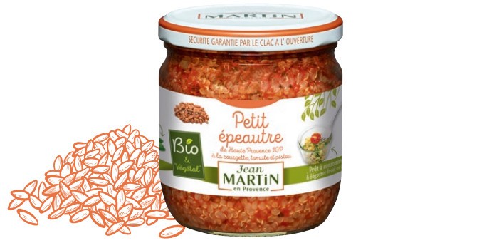Toujours dans une démarche éco-responsable, Jean Martin privilégie les circuits d’approvisionnement courts et de qualité : dans cette recette est utilisé le petit épeautre de Haute Provence labellisé IGP (Indication Géographique Protégée).