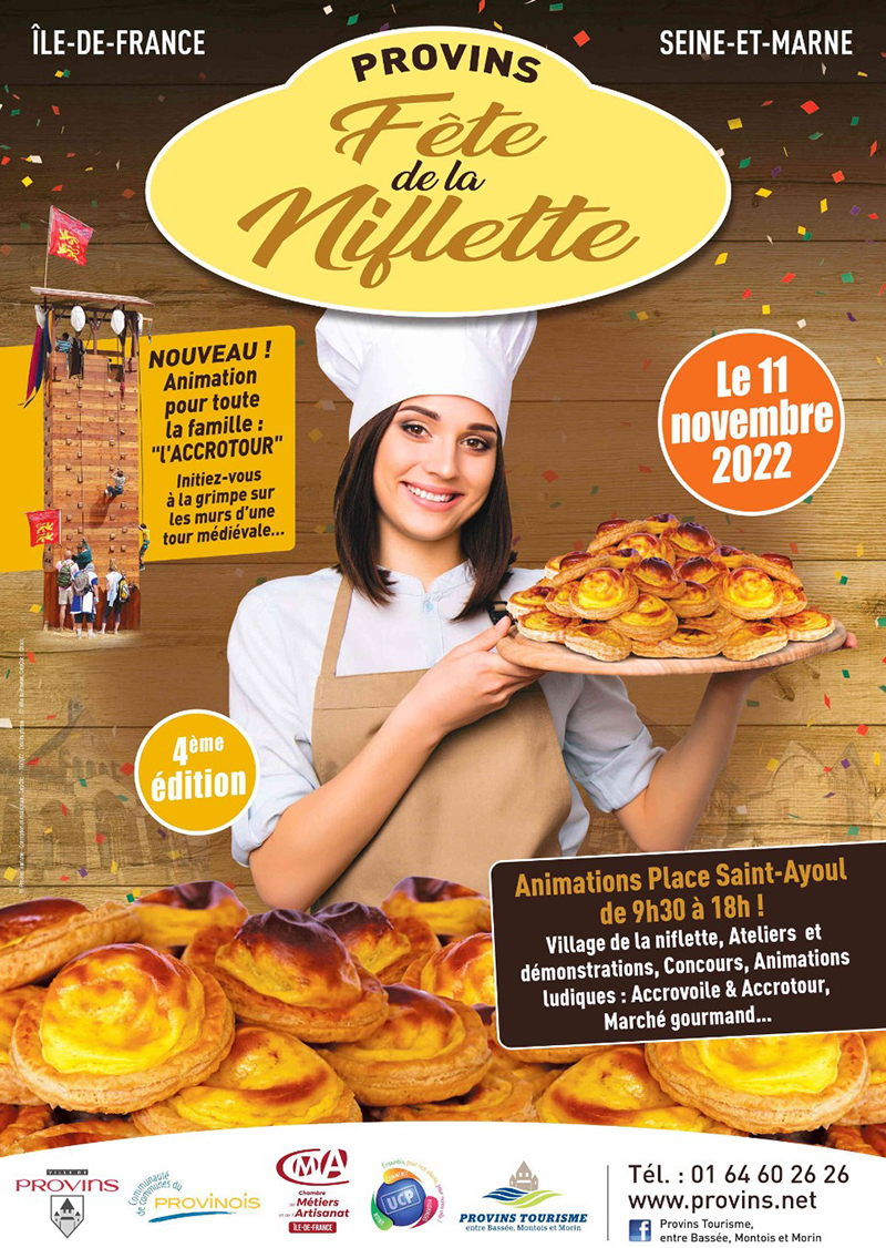 • Village de la niflette – ateliers et démonstrations en continu par les boulangers provinois, avec le concours de la Chambre de Métiers et de l’Artisanat Île-de-France – Seine-et-Marne. Tous les enfants pourront confectionner une niflette.