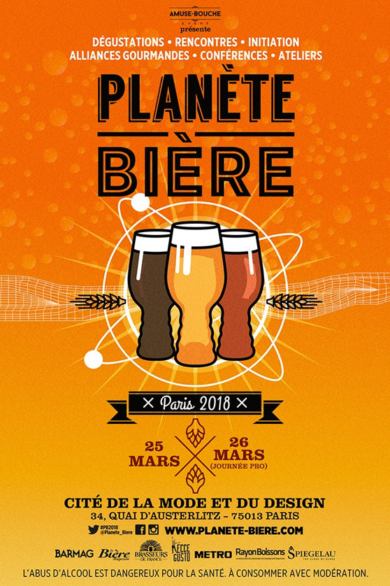 Cette année, le salon investit la Cité de la Mode et du Design (Paris XIII e ) les 25 et 26 mars 2018. Avec une centaine de marques et brasseries venues du monde entier et des conférencier(e)s de renommée internationale,Planète Bière est le premier salon de dégustation des amateurs et professionnels de la filière.