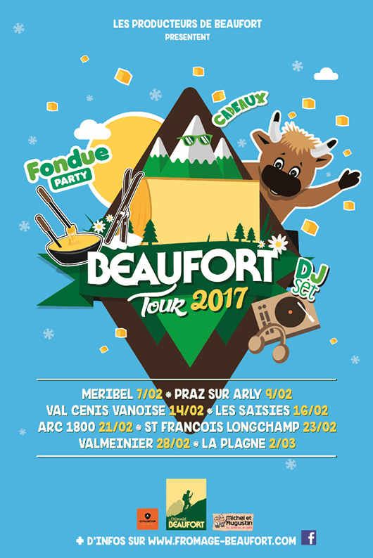 À partir du 7 février, le fromage Beaufort est présent dans 8 stations de sa zone de production (Vallées de la Maurienne, de la Tarentaise, du Beaufortain/Val d’Arly) pour faire découvrir aux skieurs ce fromage de Savoie au goût unique.