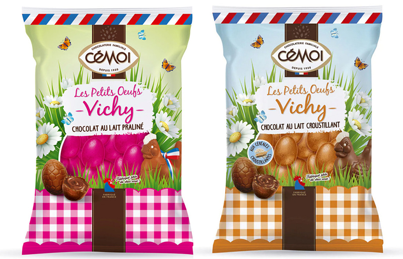 La gamme « Vichy », se positionnant comme la deuxième offre de CÉMOI pour Pâques, incarne l’esprit festif et chaleureux de cette saison. Les chocolats traditionnels tels que les moulages garnis de poules, lapins, œufs et cloches, s’accompagnent, depuis 2022, de sachets de petits œufs à cacher, clin d’oeil à la célébration pascale.