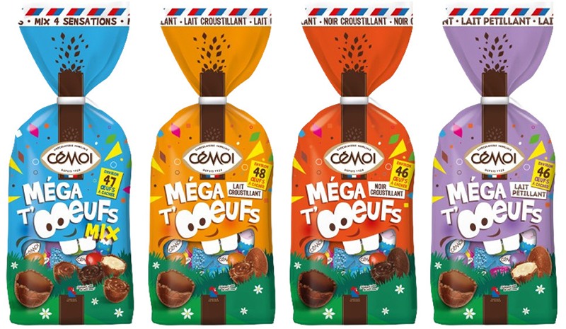 La gamme MÉGA T’ŒUFS de CÉMOI enchante les festivités de Pâques depuis son lancement. Avec ses adorables petits œufs à dissimuler, elle offre une palette véritablement surprenante de saveurs croustillantes, fondantes et pétillantes pour ravir tous les amateurs de chocolat.