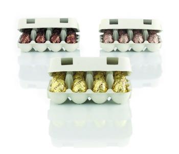 contenant un mélange de nos œufs pralinés au chocolat blanc, lait ou noir.