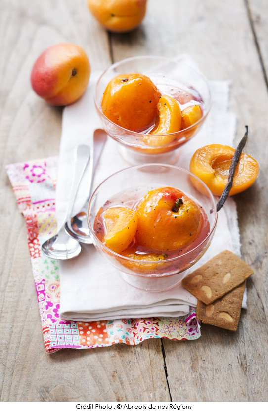 Abricots de nos Régions pochés au sirop de cassis vanillé