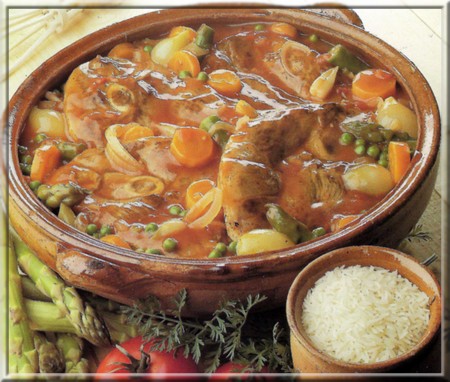 Servir dans le plat de cuisson avec le riz en accompagnement.