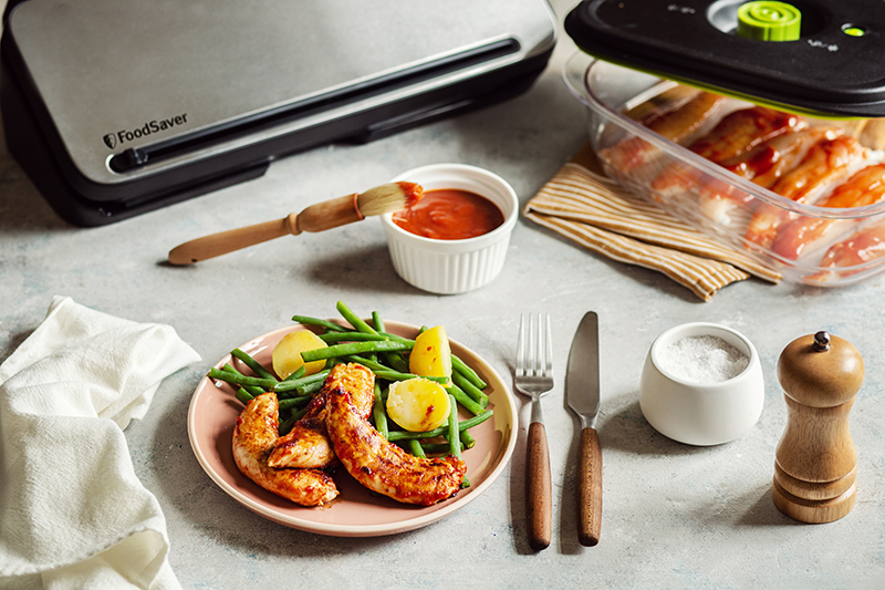 FoodSaver® présente sa délicieuse recette d'aiguillettes de poulet marinées, pour un repas complet et sain tout en se faisant plaisir !