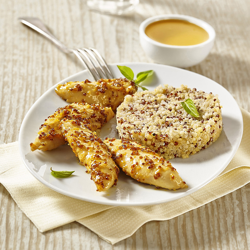 Aiguillettes de poulet miel/moutarde et son Quinoa Délice Tipiak