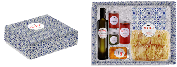 Ce coffret comprend les fameuses pâtes au gluten sain (linguine ou spaghetti), une sélection de quatre pots de sauce aux ingrédients 100% naturels mijotés en Italie, ainsi qu’une bouteille d’huile d’olive extra-vierge biologique, Il Biologico, aux arômes poivrés.