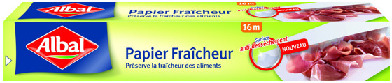 Charcuterie, morceaux de fromages, restes de viande ou poisson, tartes, biscuits… le nouveau Papier Fraîcheur d’ALBAL peut tout emballer. Finis les aliments qui se dessèchent une fois déballés. Le nouveau Papier Fraîcheur d’ALBAL est doté d’une surface anti-adhérente exclusive qui laisse respirer les aliments tout en empêchant leur dessèchement.