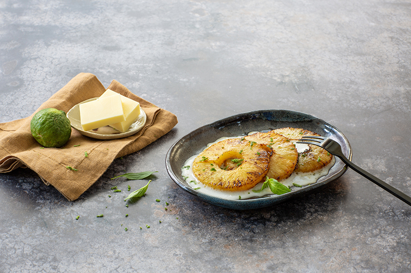 Ananas rôti au beurre Charentes-Poitou AOP, coco et combava