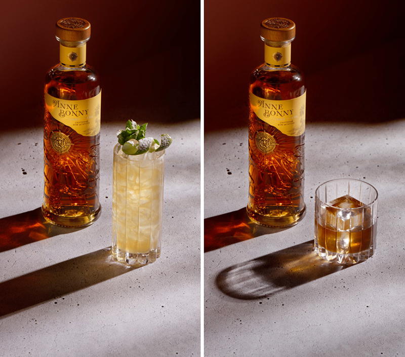 Ce Rhum ANNE BONNY™ se déguste simplement sur glace et exprime aussi ses qualités extraordinaires en long drink ou en cocktails.