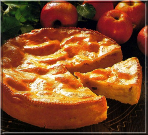 3-Peler et évider les pommes, les ranger dans le plat et les saupoudrer de sucre glace. Poser le second rond de pâte par dessus et le souder au premier. Faire de légères incisions sur le dessus de la pâte. Dorer à l'œuf.