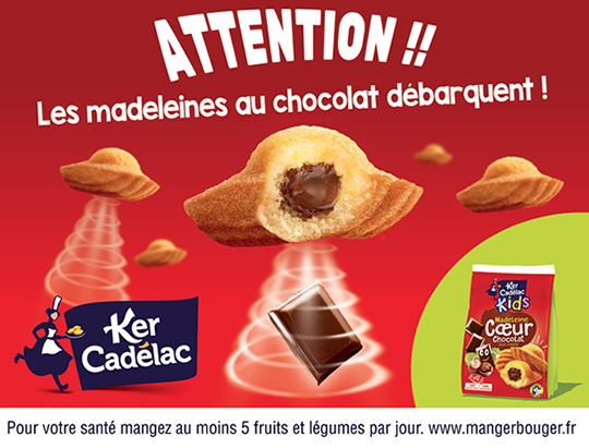 Ker Cadélac lance une nouvelle marque, Ker Cadélac Kids, qui comme son nom l’indique, a pour vocation de séduire les enfants. Deux références sont disponibles dans les linéaires de la grande distribution : la Madeleine Cœur Fraise et la Madeleine Cœur Chocolat goût Noisette.