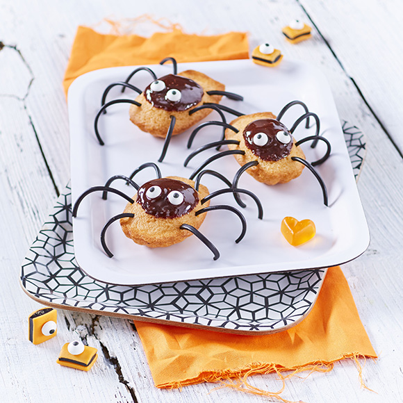 Disposer les araignées sur un plateau, accompagnées de bonbons de couleur orange !
