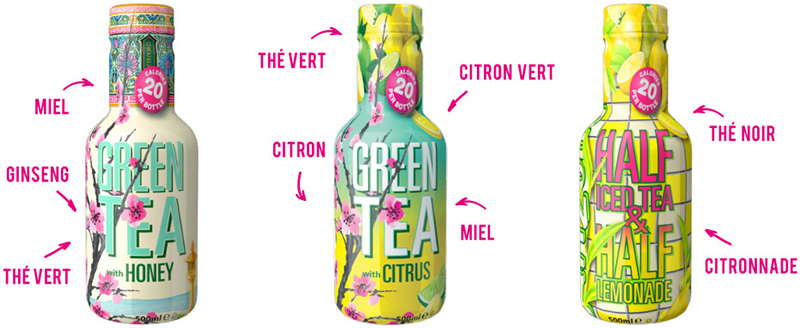 À base d’infusion de feuilles de thé vert ou de thé noir, sans colorant ni conservateur, AriZona lance en France, 3 nouveautés faibles en calories. Des saveurs uniques qui mixent citron, citron vert, miel et ginseng ! Une nouvelle fois, AriZona surprend et présente des bouteilles aux graphismes pleins de peps, so trendy et à des prix très abordables.