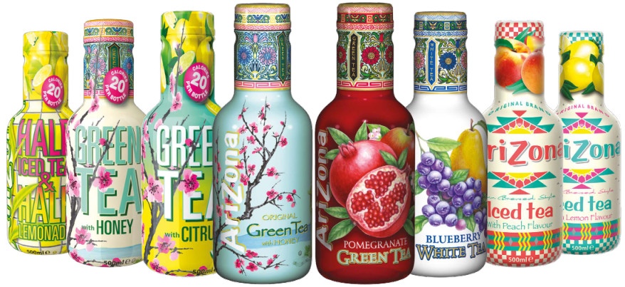 Créée à New York en 1971 par John Ferolito et Don Vultaggio, AriZona a connu un succès fulgurant à partir de la création de sa gamme de thé glacé en 1992, pour devenir en très peu de temps une véritable institution aux États Unis. Un succès qui repose sur un produit de qualité, un prix abordable et surtout sur une idée de génie de leur designer : se démarquer complètement des codes usuels du marché et proposer un format innovant, des couleurs pastels, des dessins qui font voyager…