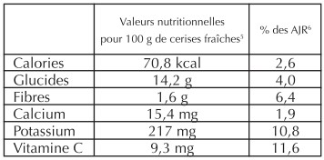 • Nutrition (4) : 100 g de cerises représentent 70,8 kcal