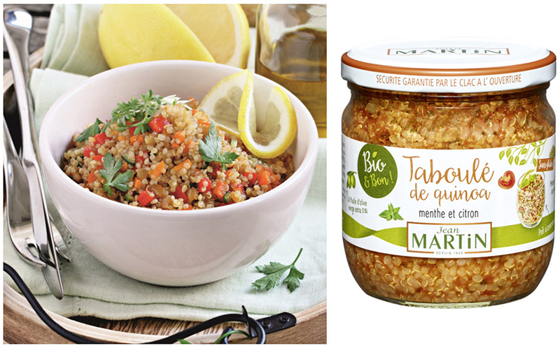 Une salade nourrissante et savoureuse adaptée aux végétariens : le Taboulé de quinoa Jean Martin est délicieusement cuisiné avec de belles tomates, de l’huile d’olive vierge extra relevé d’un peu de citron et de menthe, pour un goût très frais !