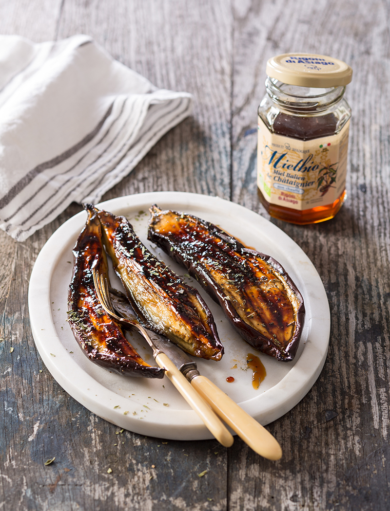 Ces aubergines peuvent accompagner une épaule d’agneau confite ou une échine de porc lentement cuite à l’étouffée.