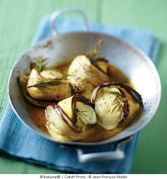 Aubergines roulées au Mini Babybel® Mini Caractère et au romarin
