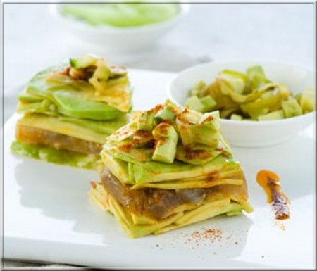 7- Démoulez et dressez de façon harmonieuse, avec sur le dessus des cubes d’avocat, puis assaisonnez le tout d’huile au paprika.