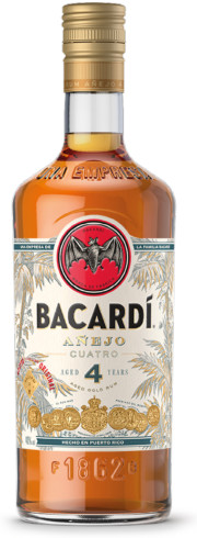 Vieilli en fût de chêne américain et sous un soleil tropical, pendant quatre ans au minimum, ce nouveau rhum révèle des notes subtiles de vanille, de raisins secs, d’abricot, de caramel et des notes légèrement boisées. Par cette composition, BACARDÍ AÑEJO CUATRO s’inscrit désormais comme le rhum idéal pour élaborer des cocktails premiums.
