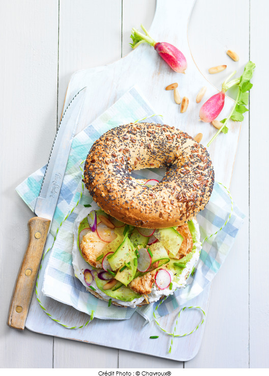 Bagel poulet-avocat et fromage de chèvre Chavroux®