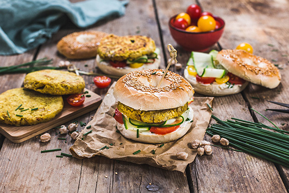 ⑩• Faites chauffer une poêle avec un peu d’huile d’olive et faites-y revenir vos galettes de pois chiches.
