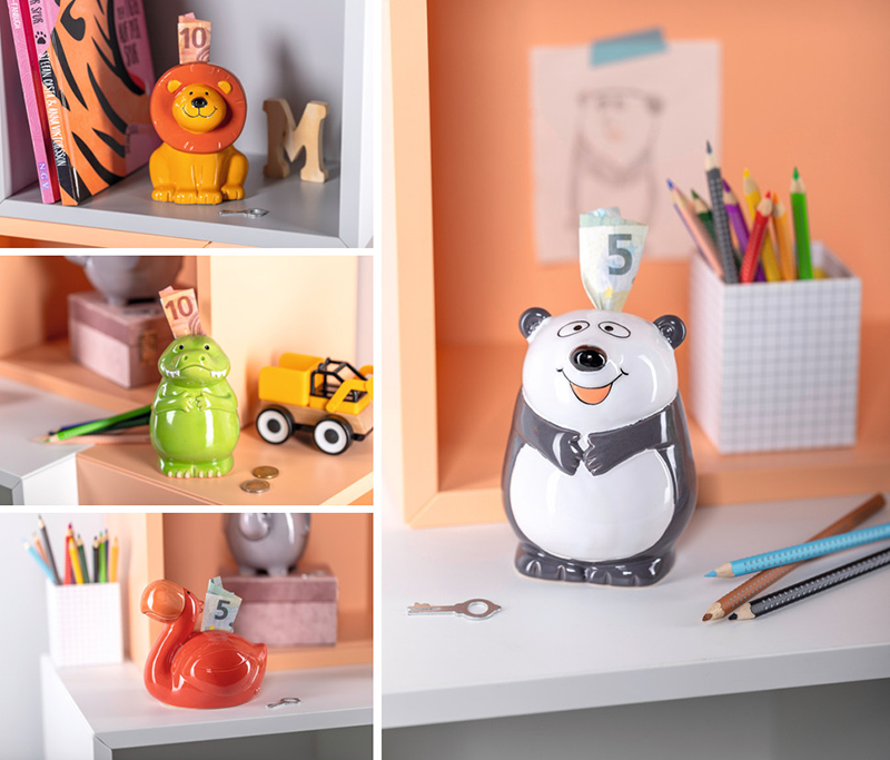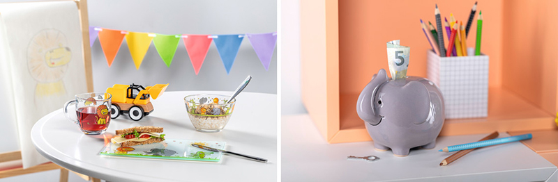 Ces joyeux animaux composent la collection BAMBINI et les accompagneront tout au long de la journée, à la maison, à l'école ou pour leur anniversaire de façon créative et ludique. Chacun peut choisir son motif et sa couleur préférés, sur des verres, des bols, des tasses, des couverts, des bouteilles nomades, des boîtes à déjeuner et même des tirelires, joyeusement agrémentés de ces rigolos compagnons.