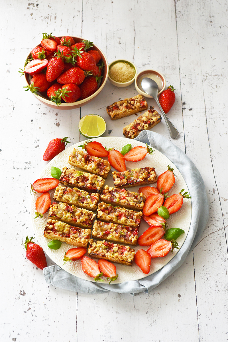 Vous pouvez alors parsemer un peu de zeste de citron vert et servir avec les 200 g de fraises coupées en deux et éventuellement quelques feuilles de basilic.