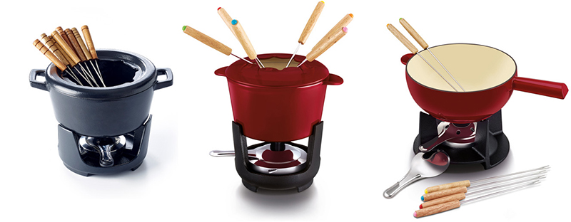 ➢ Le dernier né, le service à fondue en fonte de la gamme NORI comprend 8 piques en acier inoxydable et bois, un caquelon avec triple émaillage intérieur et extérieur, et un support chauffant. Très design, va séduire par son style et ses excellentes performances culinaires.