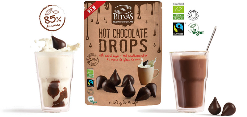 Pour le printemps 2018, BELVAS fait le show avec ses nouvelles « Drops » : des gouttes de chocolat bio au sucre de fleur de coco qui fondent dans du lait chaud, pour réaliser en un instant et de façon ludique un chocolat chaud gourmand et onctueux.