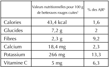 • Nutrition (4) : 100 g de betteraves représentent 43,4 kcal