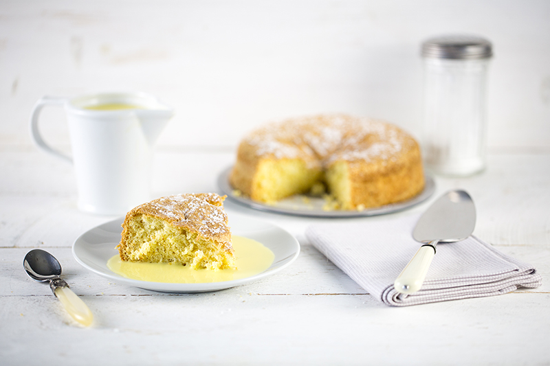 Sortir le biscuit de Savoie du four et laisser reposer 1 heure avant de le servir accompagné de la crème anglaise.