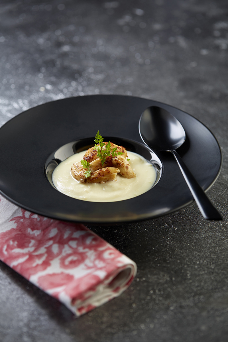 Blanquette de cuisses de grenouilles à la poudre d’orange et sabayon de Ratte du Touquet