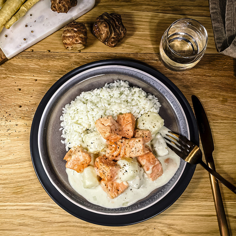 Blanquette de Saumon Écossais Label Rouge et légumes racines