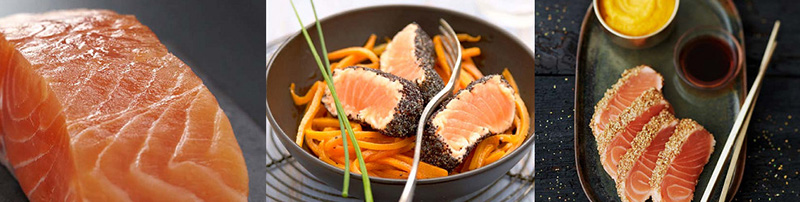 Le saumon est l’un des poissons préférés des Français. Facile à cuisiner et sans arête, le saumon plaît au plus grand nombre. Sa chair rosée est très parfumée et se prépare aisément sous toutes ses formes : entier, en filets, en pavés, en darnes. Le Saumon écossais Label Rouge peut faire l’objet de nombreuses préparations et se retrouve au cœur de recettes toutes plus savoureuses les unes que les autres, en quelques minutes. Cru ou cuit, les possibilités sont infinies et ça donne envie !
