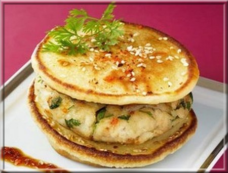 7. Faire poêler les galettes et les placer entre deux blinis.