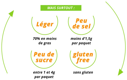 Son format « poche » de 70 grammes ultra pratique et nomade se glisse facilement dans un sac pour prévenir les petites fringales du quotidien. Ce sachet sera également idéal au moment de l’apéritif pour un moment de partage et de convivialité entre amis !