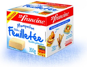 2- Étalez la pâte feuilletée Francine au rouleau dès sa sortie du réfrigérateur sur 4 mm d’épaisseur environ.