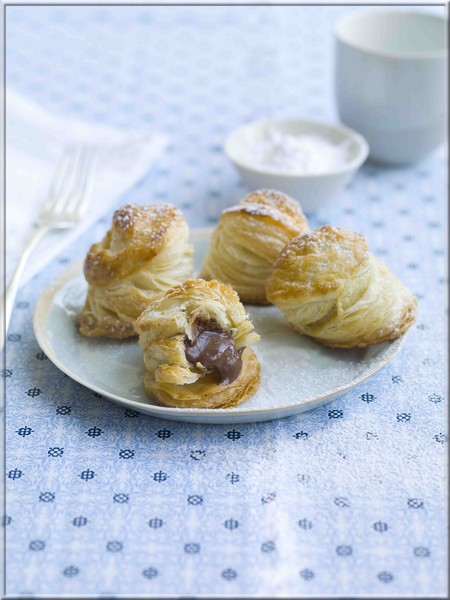 8- Disposez, sur la moitié des ronds de pâte feuilletée, une rondelle de banane recouverte d’un carré de chocolat.
