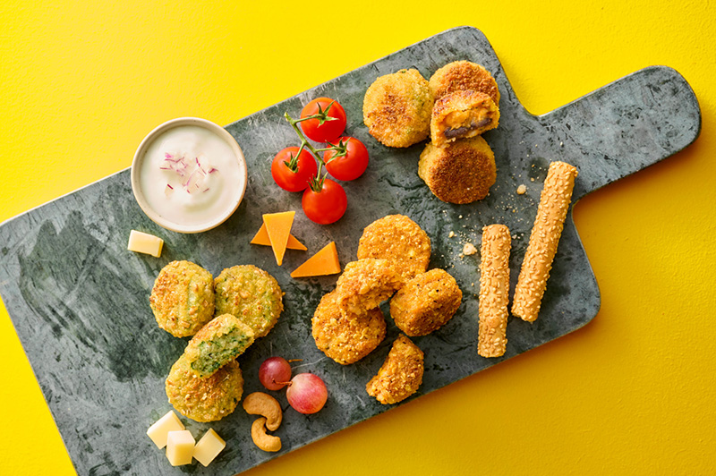 Sous une panure croustillante aux graines, la douceur de l’épinard et de l’aubergine, des pois chiches et le croquant de la courgette sont rehaussés par une touche d’ail et de fromage de chèvre
