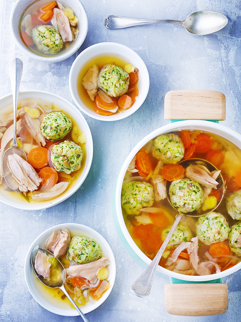 Bouillon à l’effiloché de lapin et gnocchi de pain