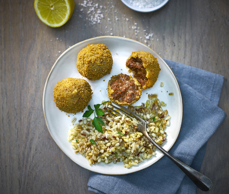 Boulettes d’agneau croustillantes à la Fleur de Sel et mélange au riz complet façon risotto