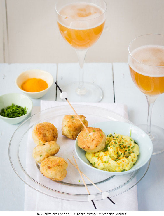 Déguster ces boulettes de poulet accompagnées de la sauce crémeuse au cidre doux et d’un verre de cidre Demi-sec Ferme du Lavoir ou du Demi-sec Lebrun.